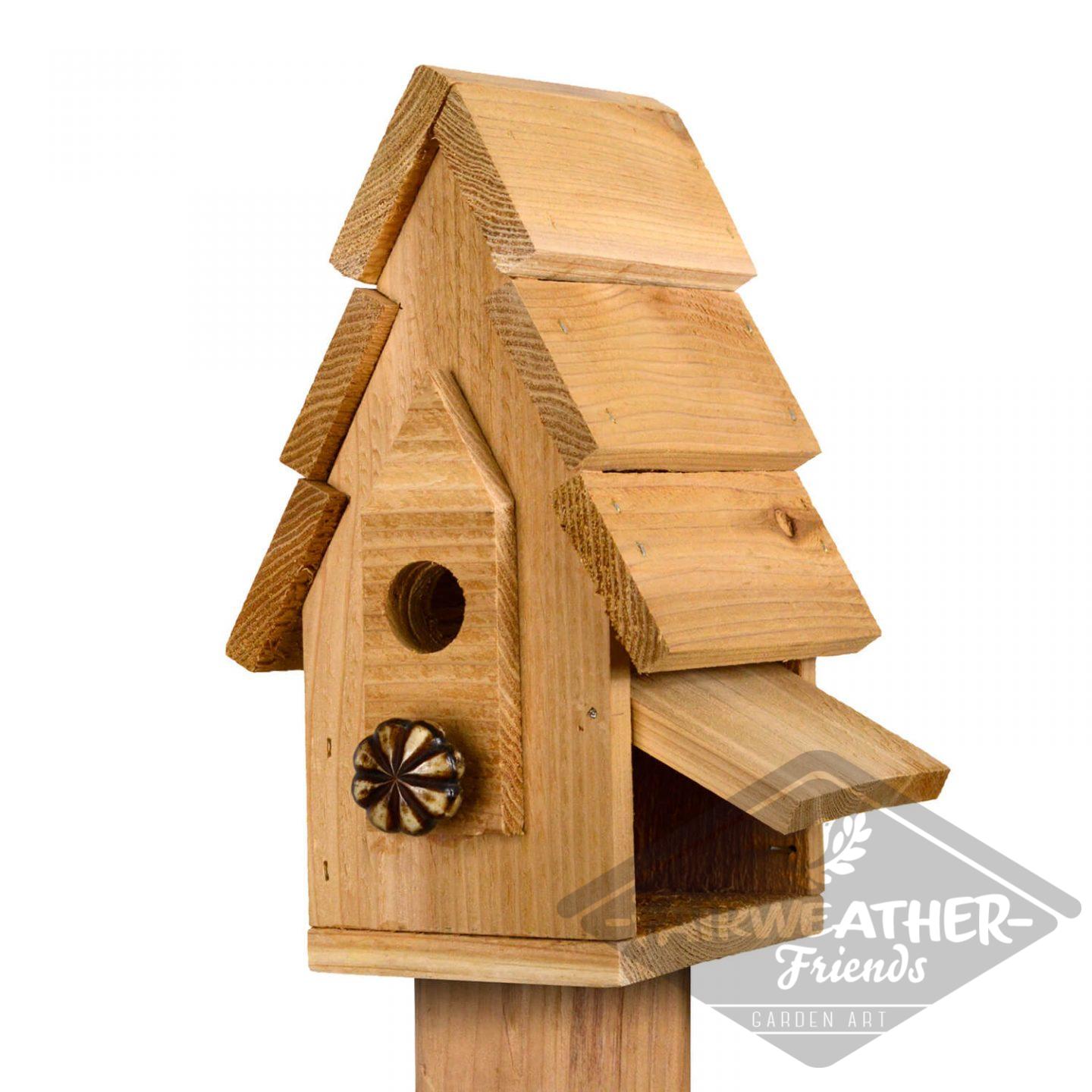 Our handcrafted birdhouses are made from natural Western Red Cedar for its appearance and durability.